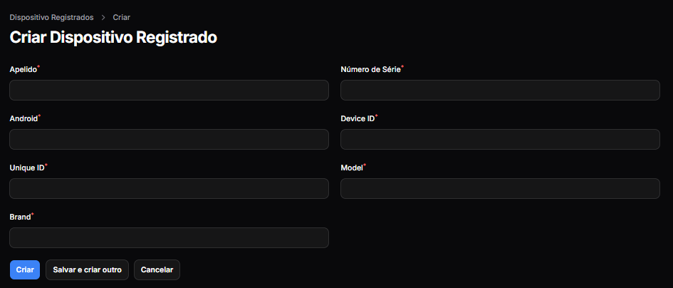 - Criar dispositivo registrado - Adicionar novo dispositivo