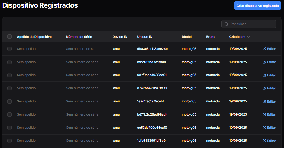 Dispositivos Registrados