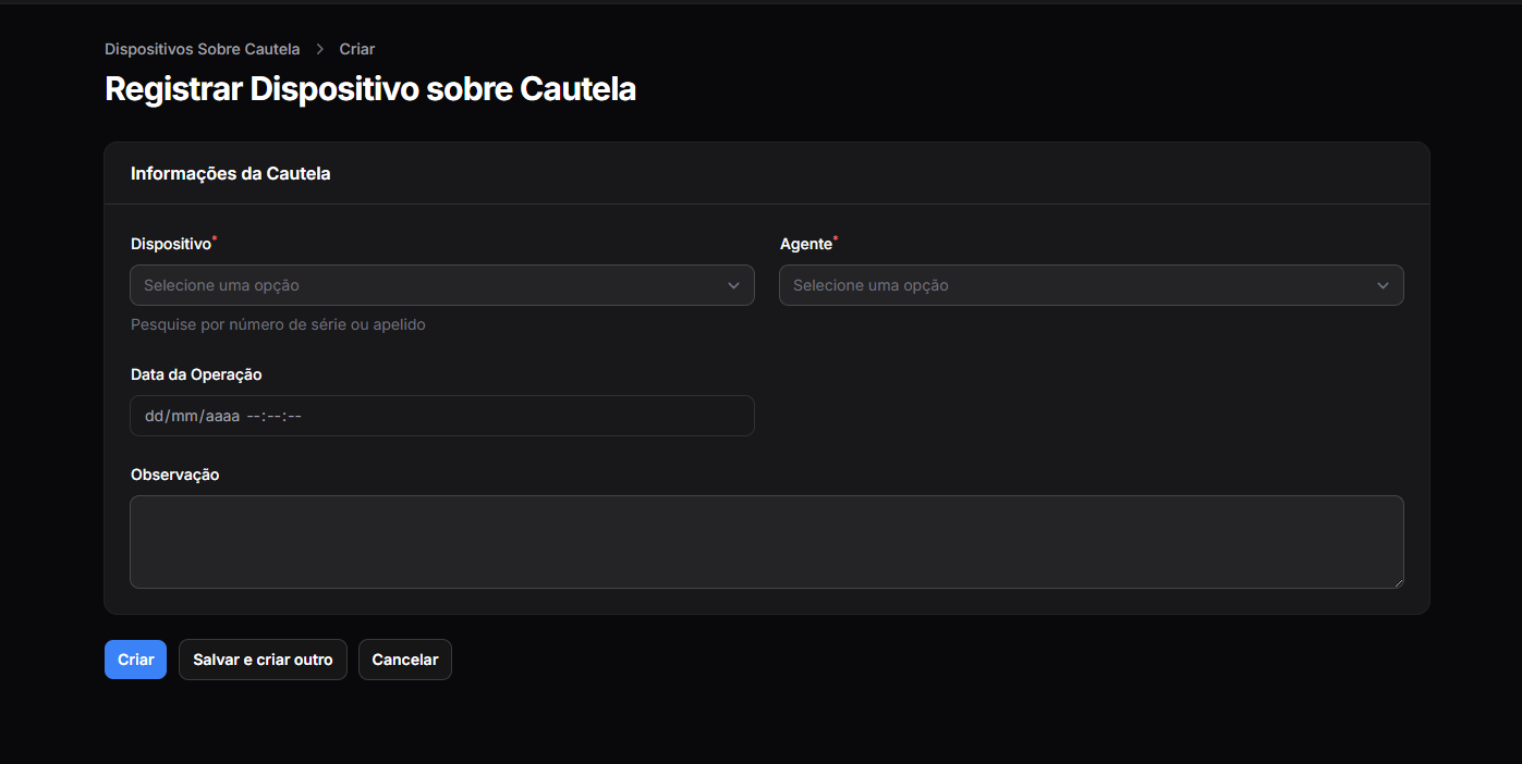 Serve para registrar quem está utilizando talões de multa, tablets, bloqueadores, câmeras, rádios ou qualquer outro item patrimonial durante as operações de fiscalização.